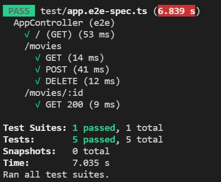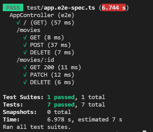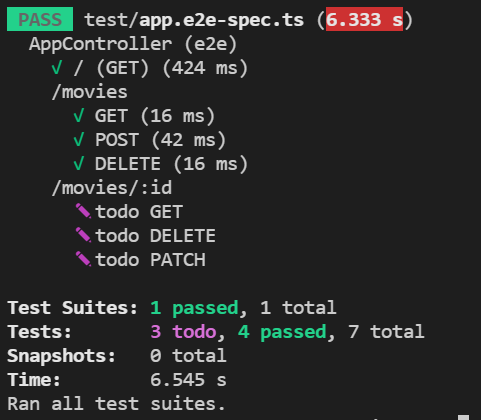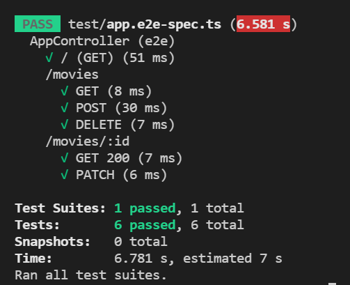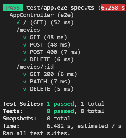 이로써 /movies end point에 대한 E2E 테스팅 완료했다.