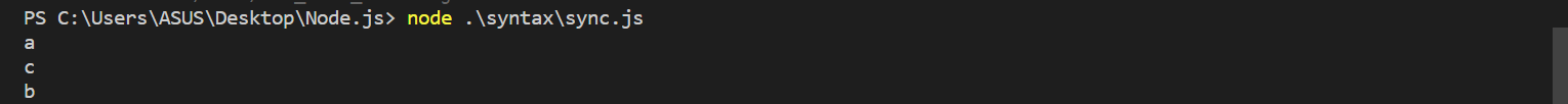 결과 해석 : a -> c 바로 동작, b는 b대로 동작하다가 끝나면 함수가 호출되어 나중에 실행
