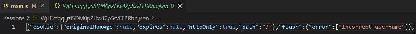 틀리게 로그인했을 때 세션에 에러 메세지가 추가된 것을 볼 수 있다.