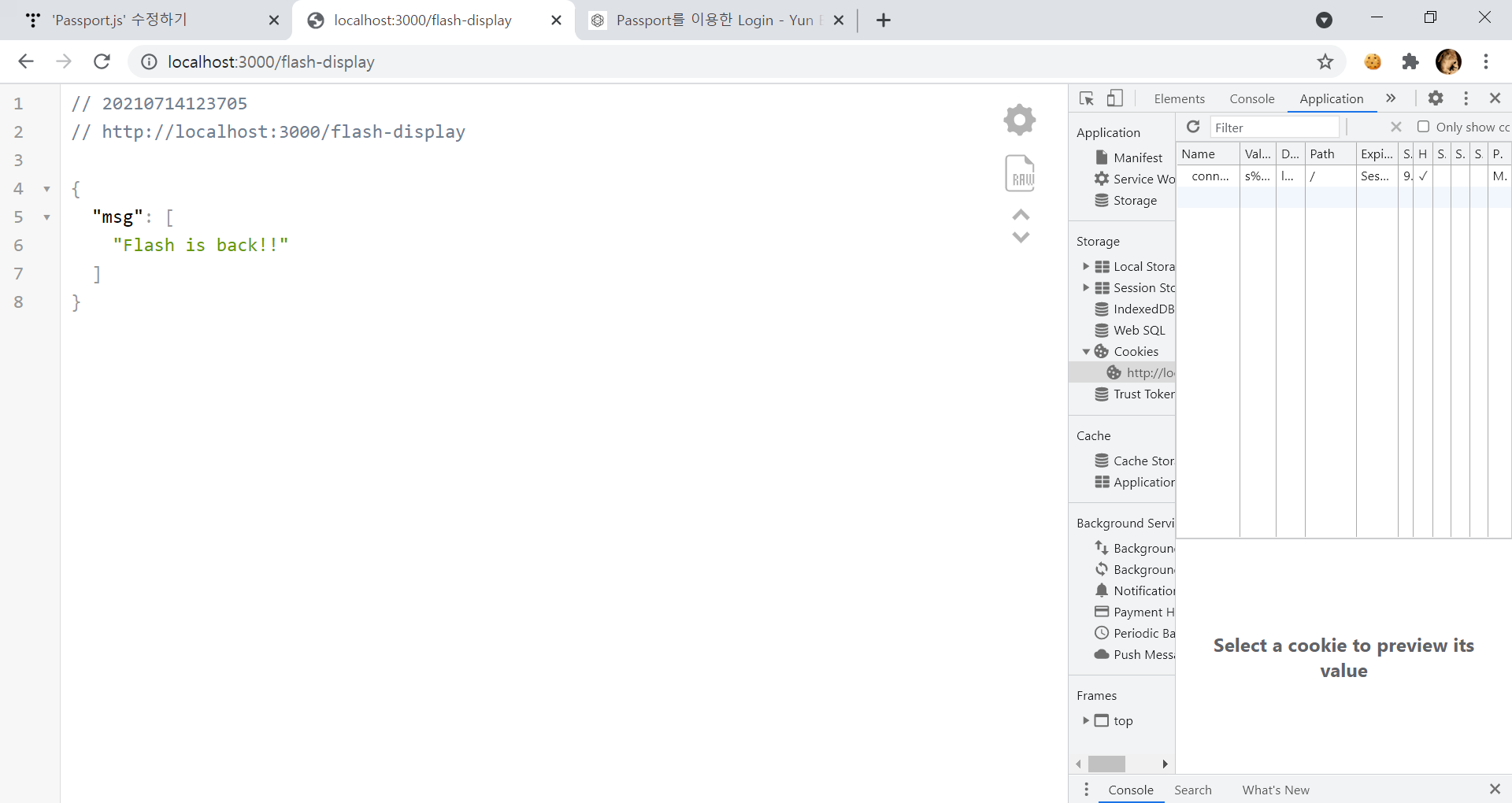 여기까지가 flash에 대한 설명이고 이제 passport에 flash를 적용해보자.
