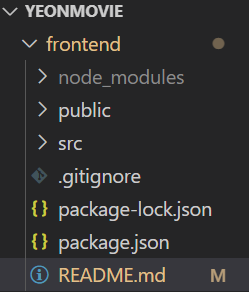 나는 폴더 이름을 'yeonmovie', 리액트 프로젝트 이름을 'frontend'로 했다.